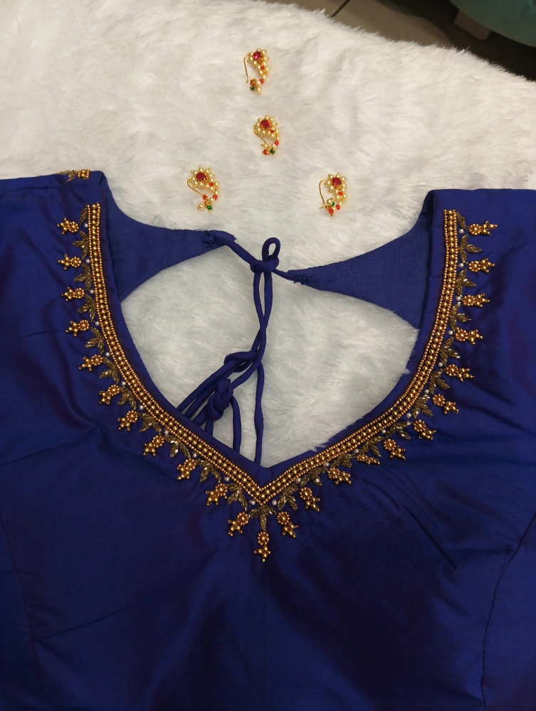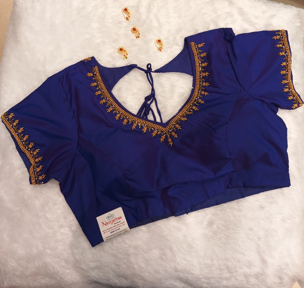 Pure Silk Handwork on Purple Blouse With Golden Bead Work Designer Blouse