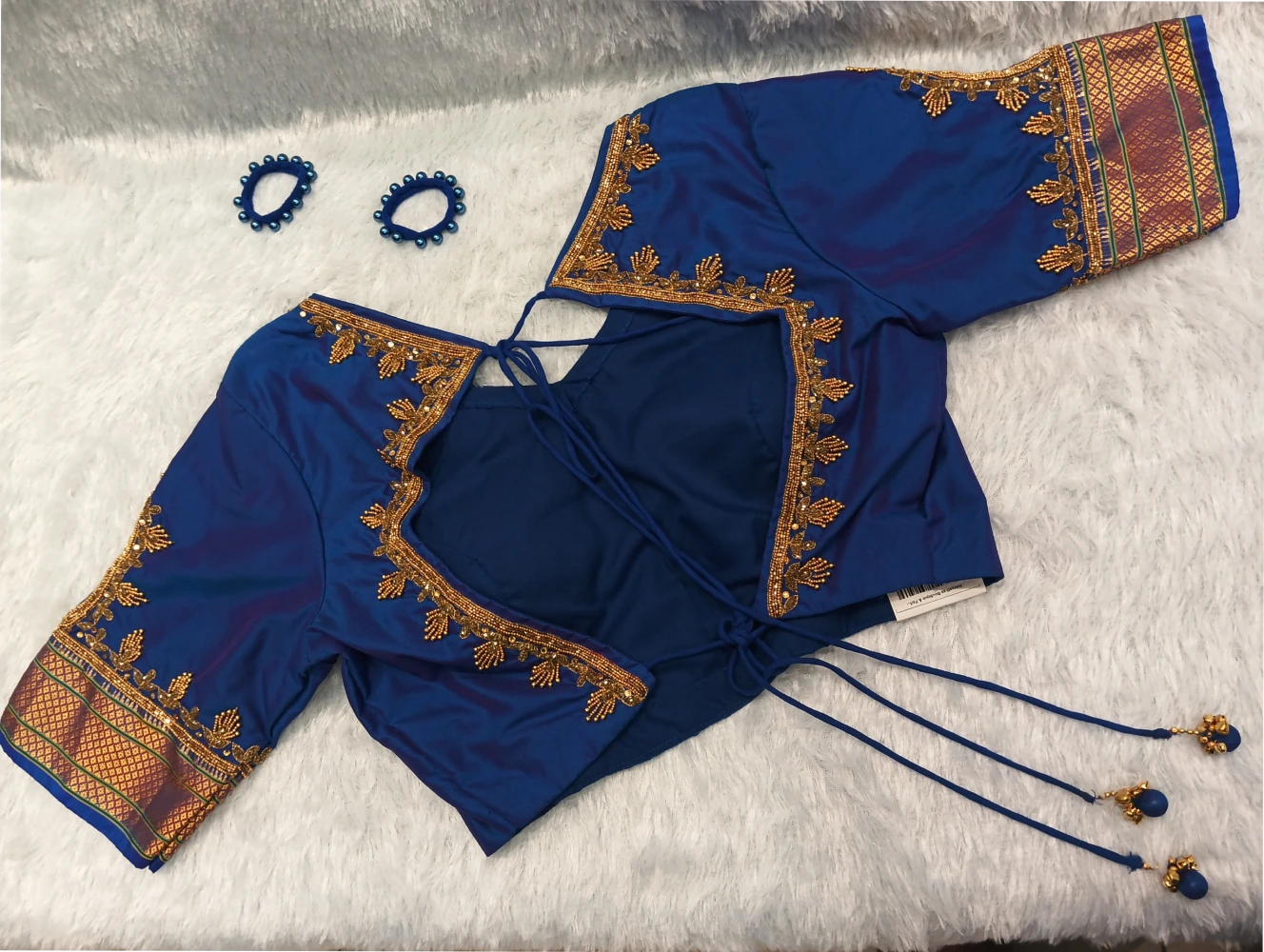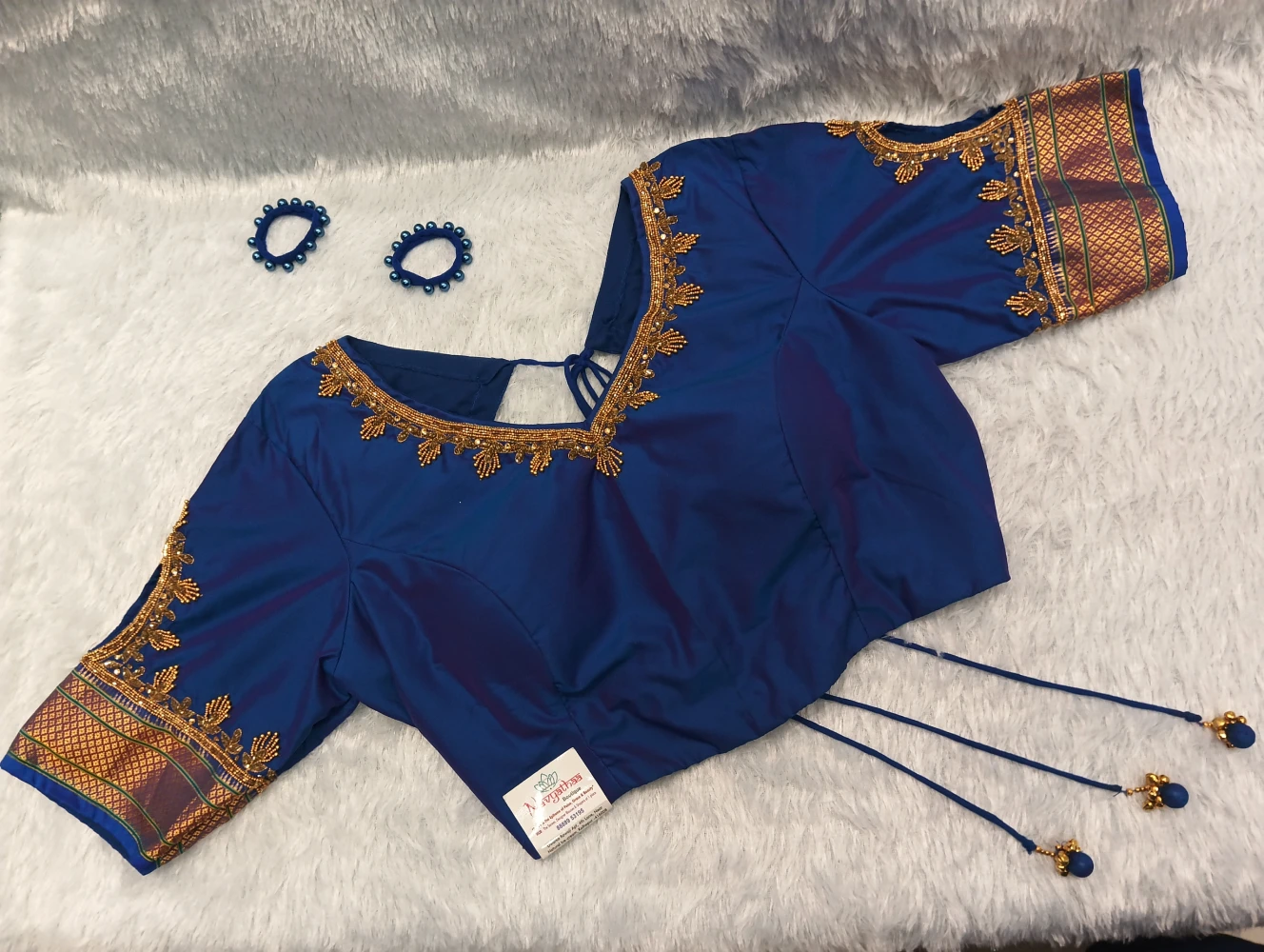 Pure Silk Handwork on Purple Blouse With Golden Bead Work Designer Blouse