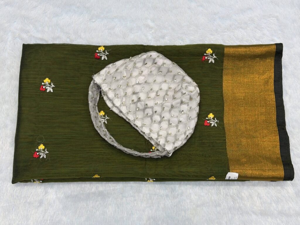 Fancy Cut Dana Hand Work White Saree With Designer Blouse Fabric