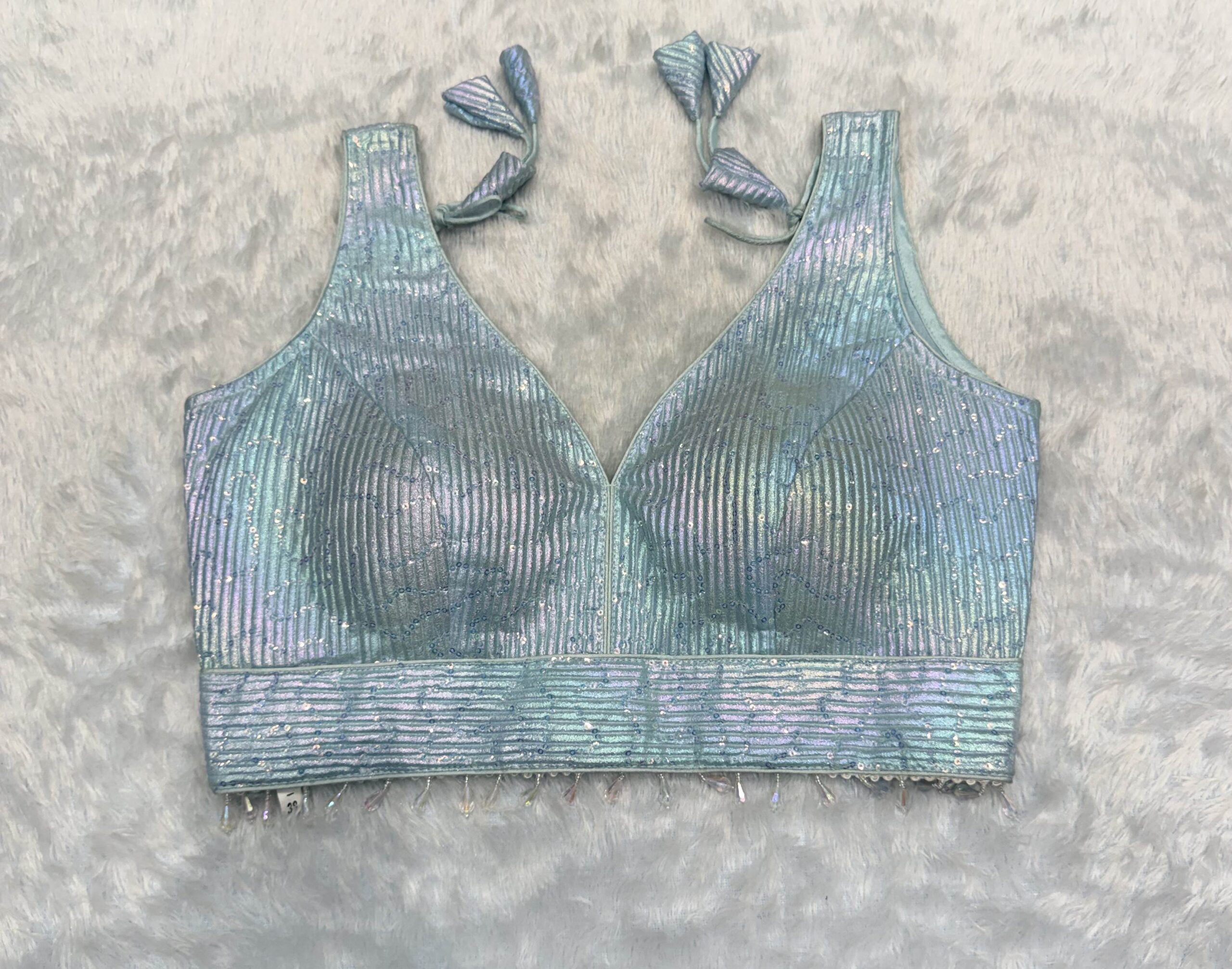 Pure Silk Green Seevless Hand Work Designer Blouse