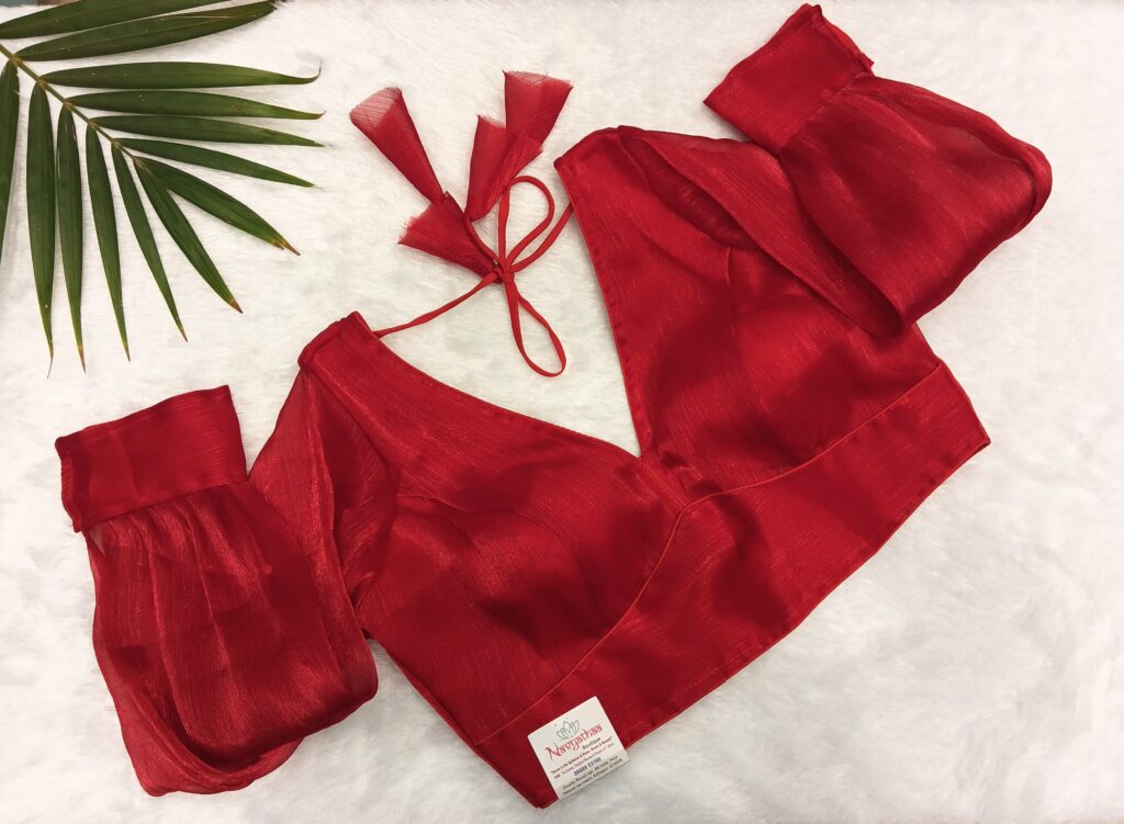 Georget White with White Thread Work Long Sleeveless Designer Blouse
