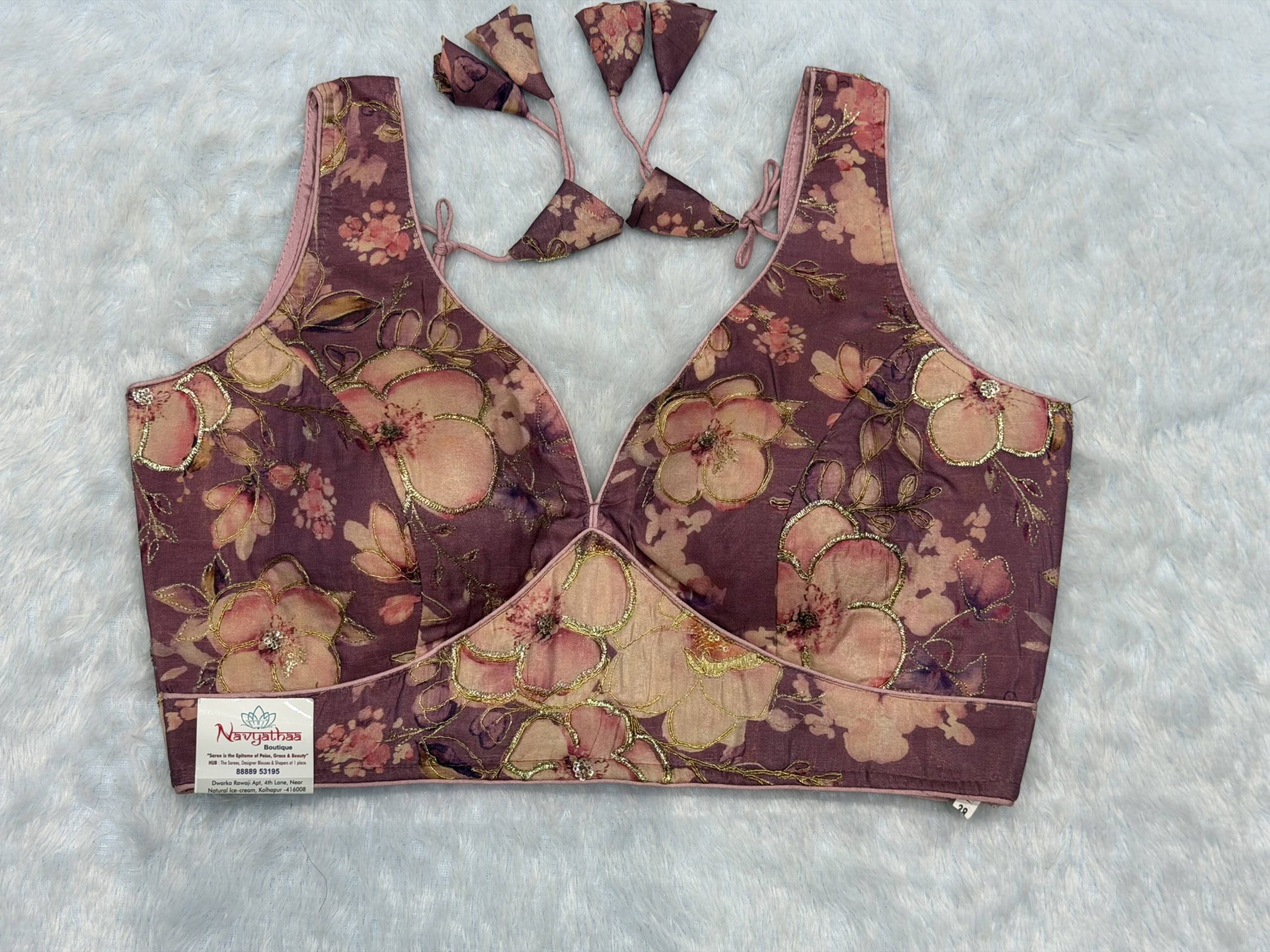 Fancy Blouse Sleeveless Patter Pink Blouse