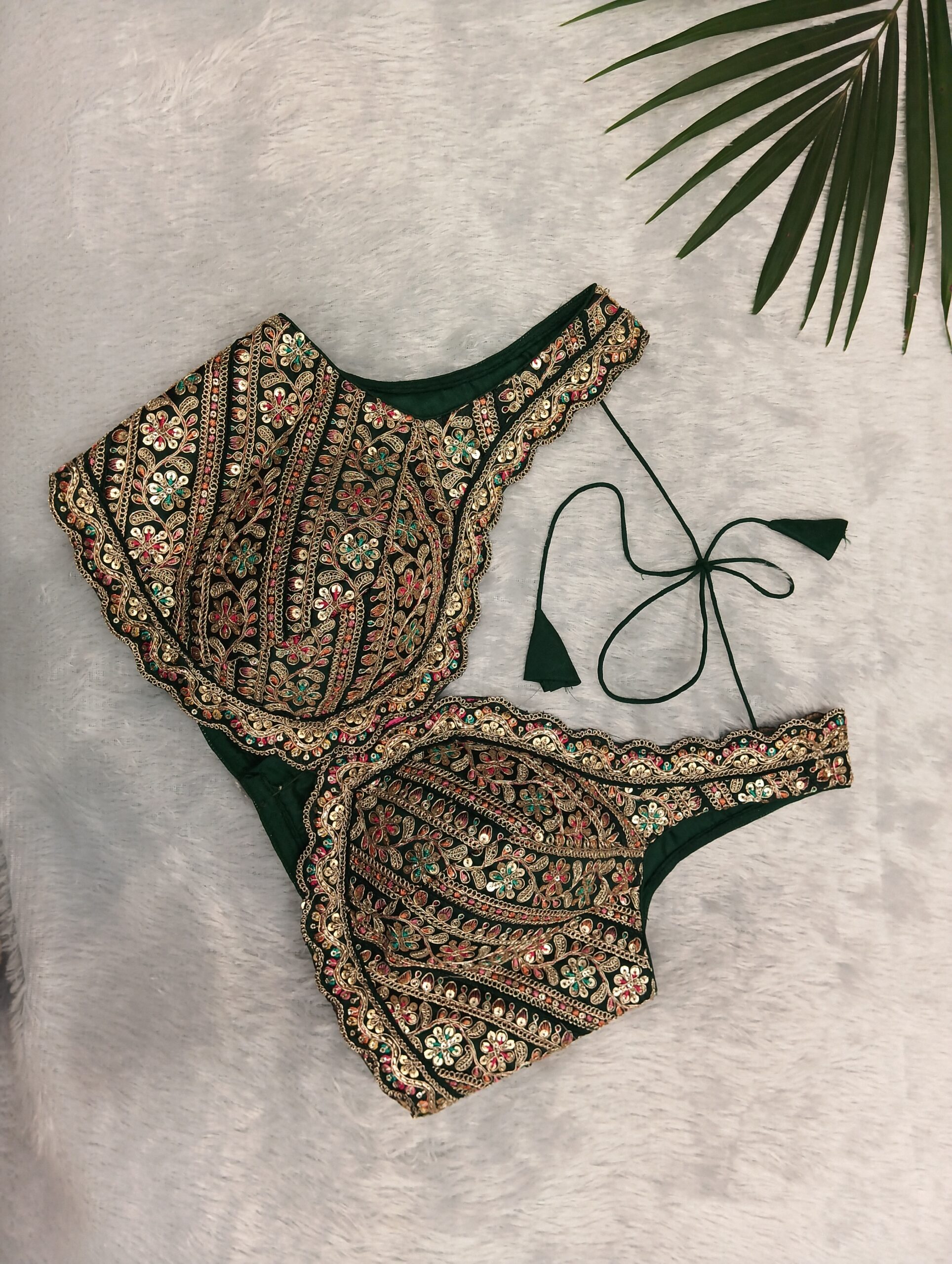 Pure Silk Green Seevless Hand Work Designer Blouse