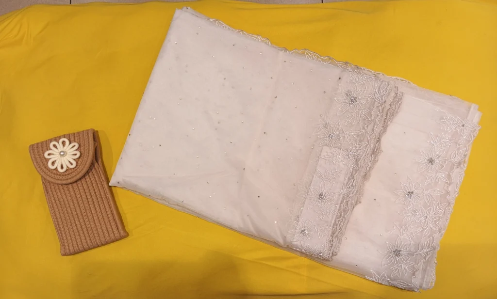 Fancy Cut Dana Hand Work White Saree With Designer Blouse Fabric