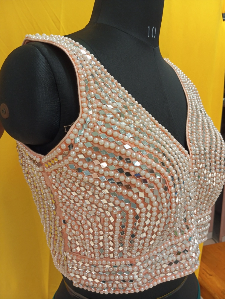 Pure Silk Green Seevless Hand Work Designer Blouse