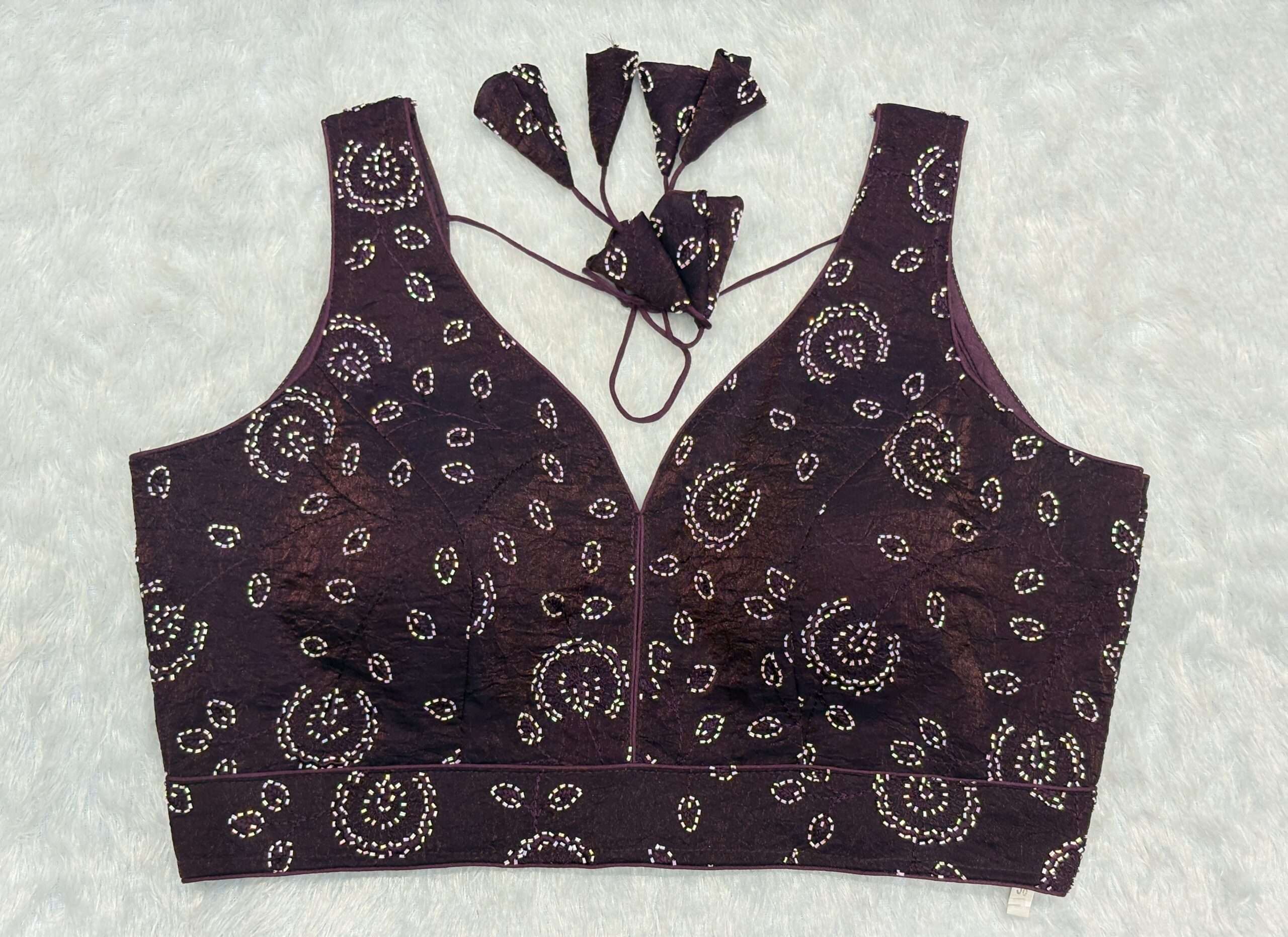 Red Fabric Shade with Gold Heavy Bead Handwork Designer Sleeveless Blouse