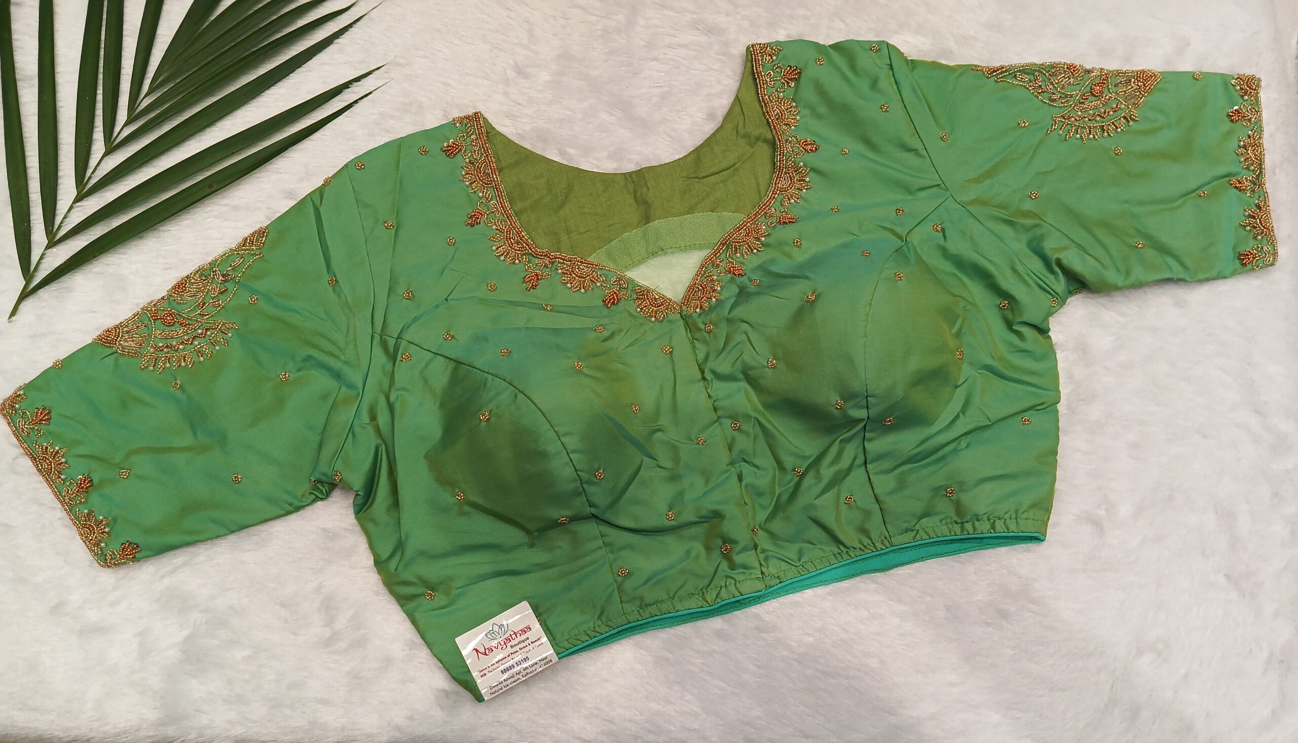 Pure Green Multi Paithani Banarasi Silk Blouse
