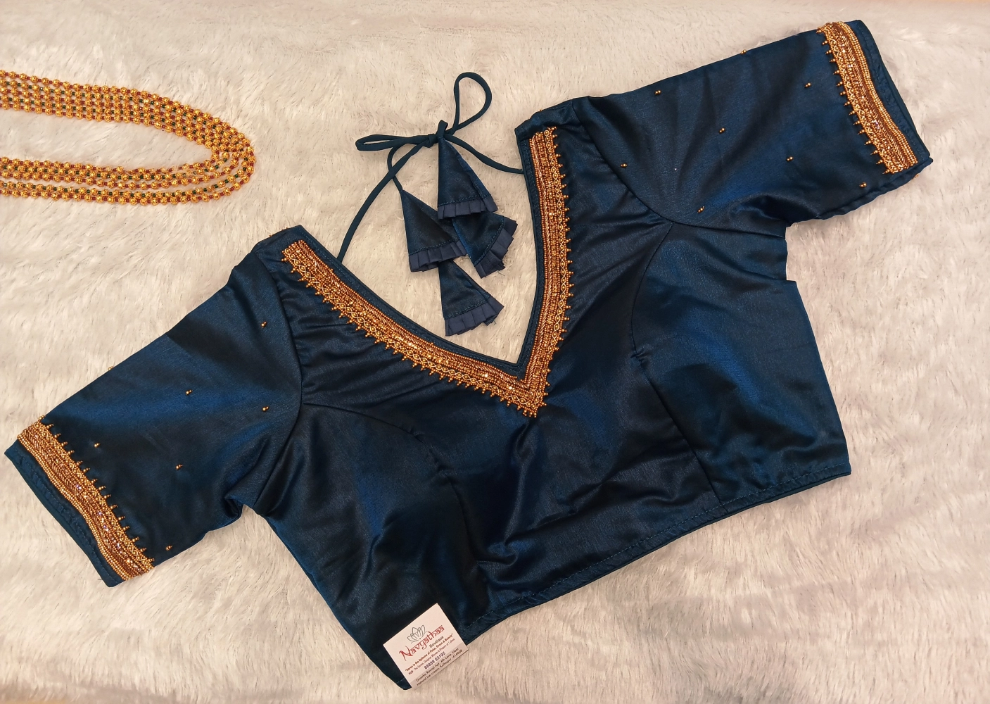 Pure Silk Green Seevless Hand Work Designer Blouse