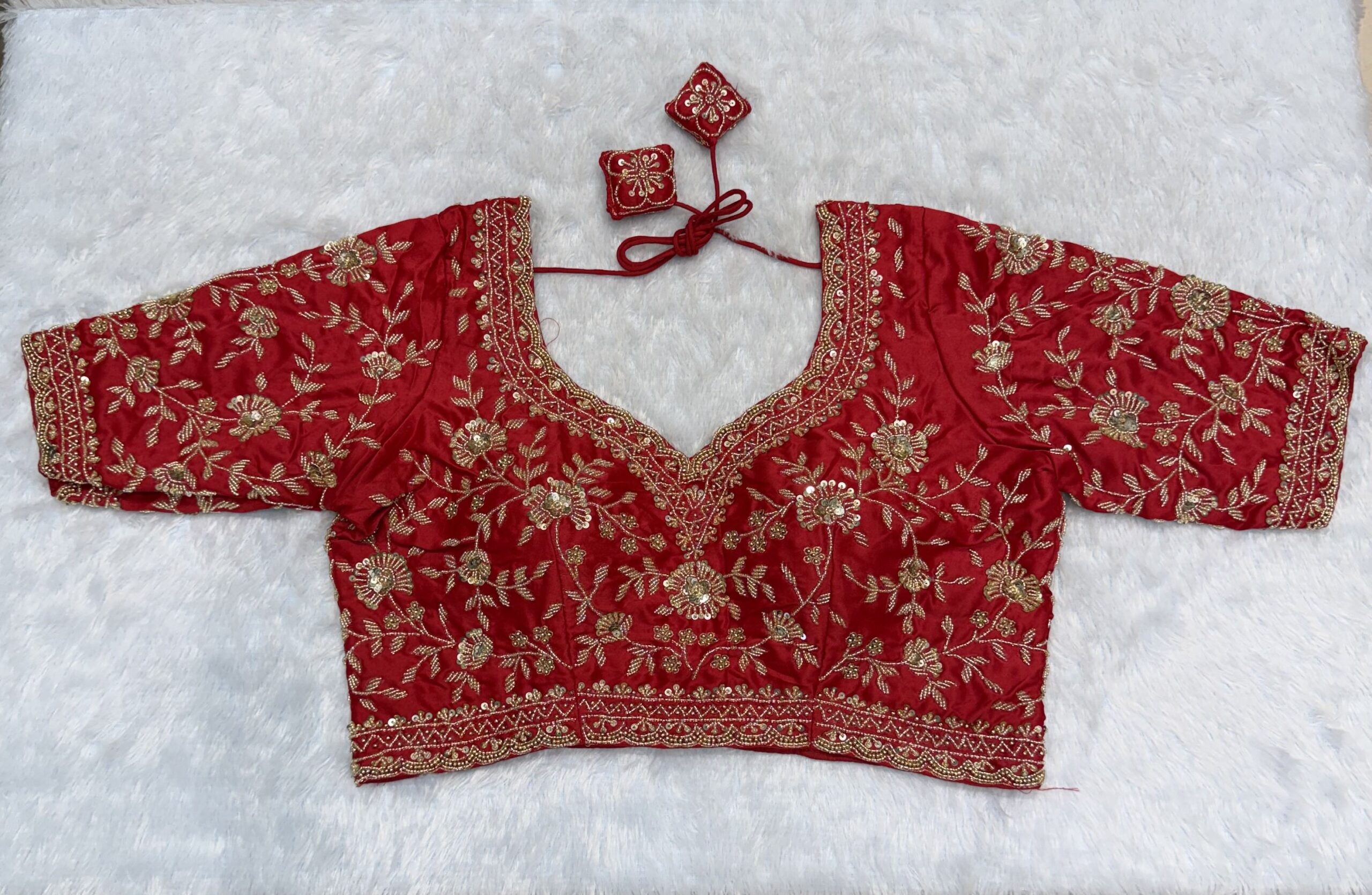 Red pure silk in dual shade handwork Blouse