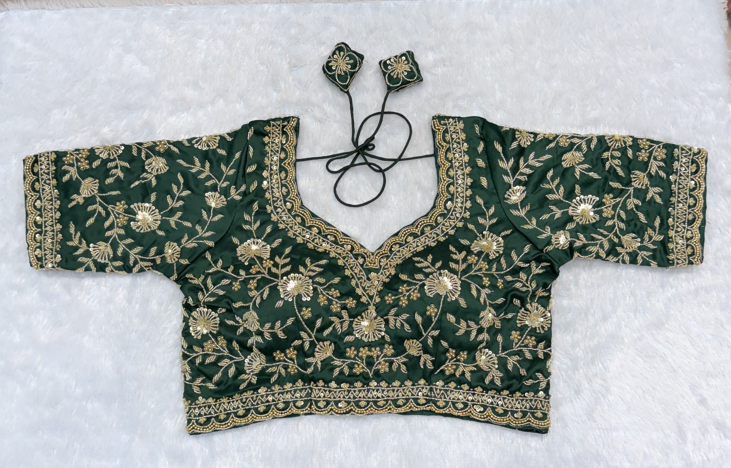 Georget Black Pure Handwork Designer Blouse with Golden & Moti Beads