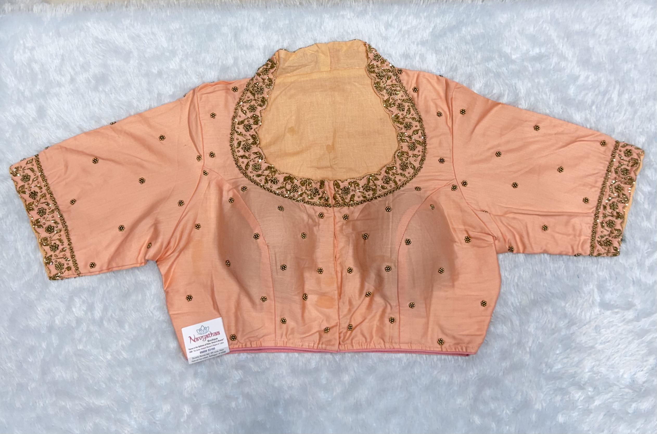 Peach Pure Hand Work Designer Blouse