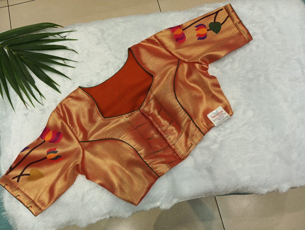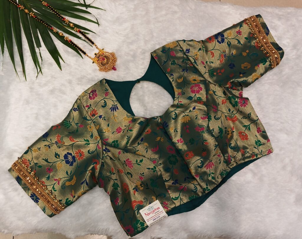 Pure Green Multi Paithani Banarasi Silk Blouse