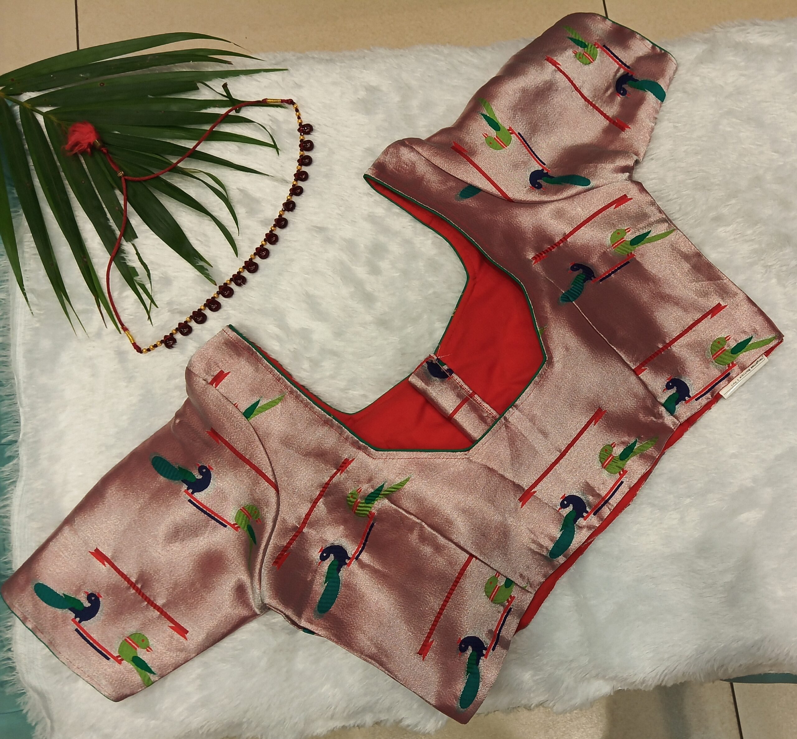Pure Green Multi Paithani Banarasi Silk Blouse